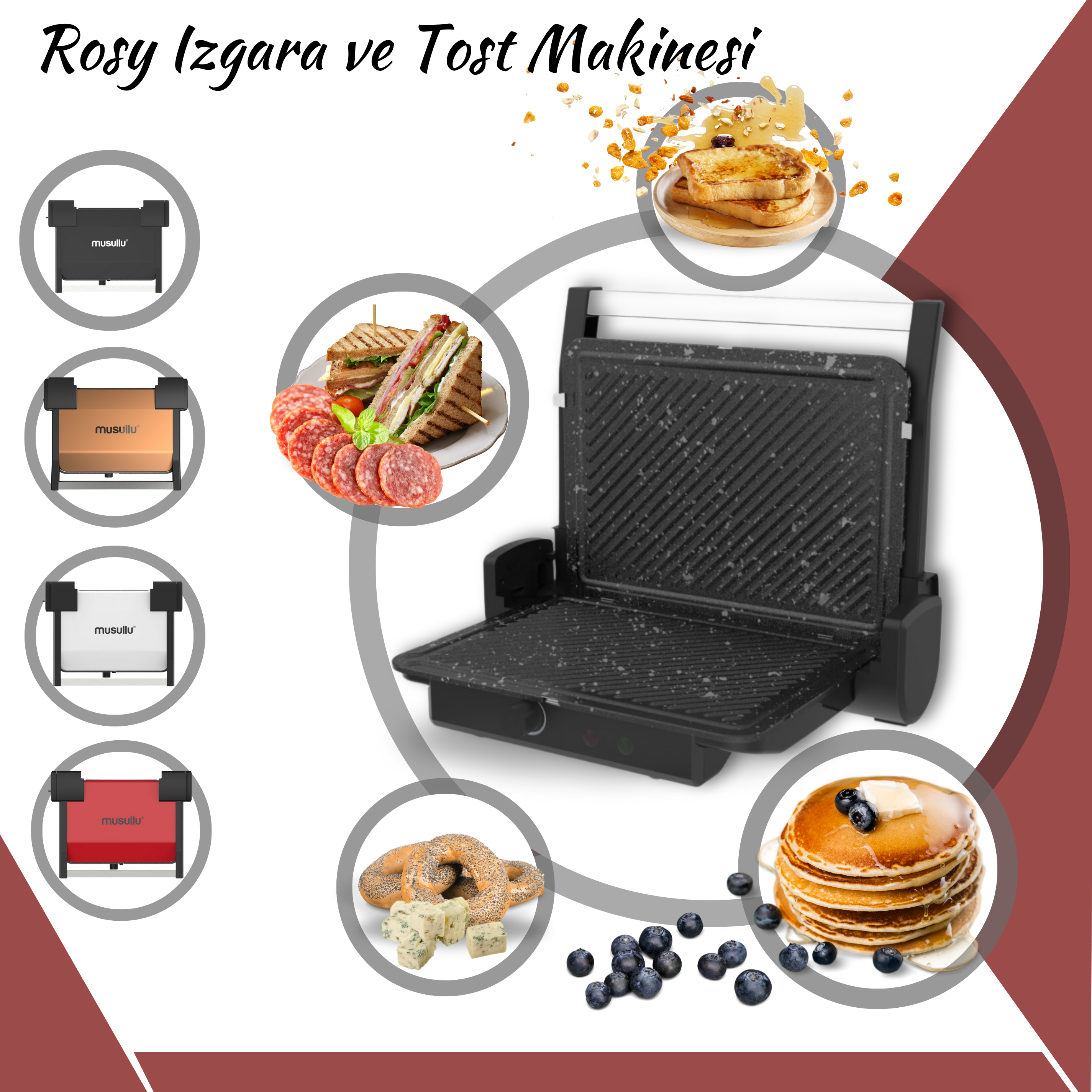 Musullu Rosy Tost Makinesi, mutfakta pratik ve keyifli bir tost deneyimi sunmak üzere tasarlanmıştır. 180 derece açılabilen üst gövde, geniş ızgara imkanı sağlayarak çeşitli tost seçeneklerine olanak tanır. Termostat uyarı ışığı, kullanıcıya pişirme işlemi hakkında bilgi verirken, 6 adet tostu aynı anda pişirebilme özelliği kalabalık sofralarda hız ve verimlilik sağlar. Çıkarılabilir ve bulaşık makinesinde yıkanabilir yapışmaz ısıtıcı plakalar, temizlik sürecini kolaylaştırırken, 6 kademeli ısı ayar düğmesi ise her kullanıcının tercih ettiği kıvama ulaşma imkanı sunar. Dik konumda muhafaza özelliği sayesinde makineyi saklamak da oldukça kolaydır. Isıtıcı plakalarda yer alan yağ birikim yuvası ise temizlik sürecini daha da pratik hale getirir. 1800 watt gücü ile hızlı ısınma ve etkili pişirme sağlayan Musullu Rosy Tost Makinesi, güçlü performansıyla öne çıkar. Şık tasarımı ve kullanışlı özellikleriyle mutfakta işleri kolaylaştırırken, kaliteli malzeme ve teknolojisiyle uzun ömürlü bir kullanım sunar.